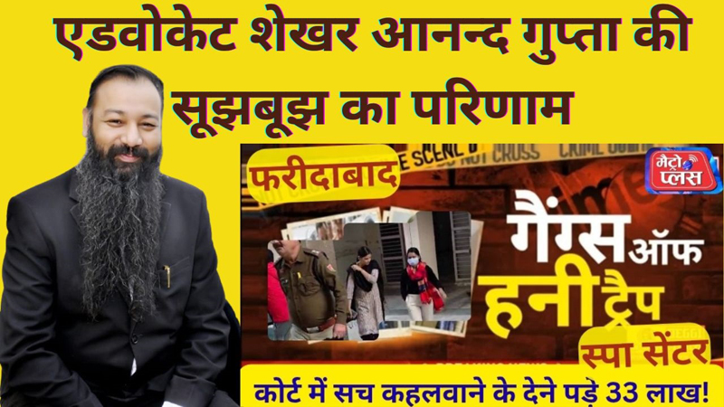 ऐसे ही एक मामले के पर्दाफाश करवाया शहर के नामी-गिरामी एडवोकेट शेखर आनंद गुप्ता ने। पीडि़त धीरज के एडवोकेट शेखर की सुझबुझ का ही परिणाम था कि पुलिस ने क्राऊन इंटीरियर्ज मॉल के स्पा सेंटर में काम करने वाली एक युवती को हनी ट्रैप के आरोप में गिरफ्तार कर लिया और इस गिरोह का भंडाफोड़ किया। क्राऊन इंटीरियर्ज मॉल में एक स्पा सैंटर में काम करने वाली इस युवती पर धीरज गुप्ता नामक युवक को बलात्कार के झुठे केस में फंसाने और फिर उससे हनी ट्रैप में 33 लाख रूपये लेने के गंभीर आरोप हैं।