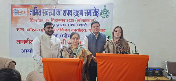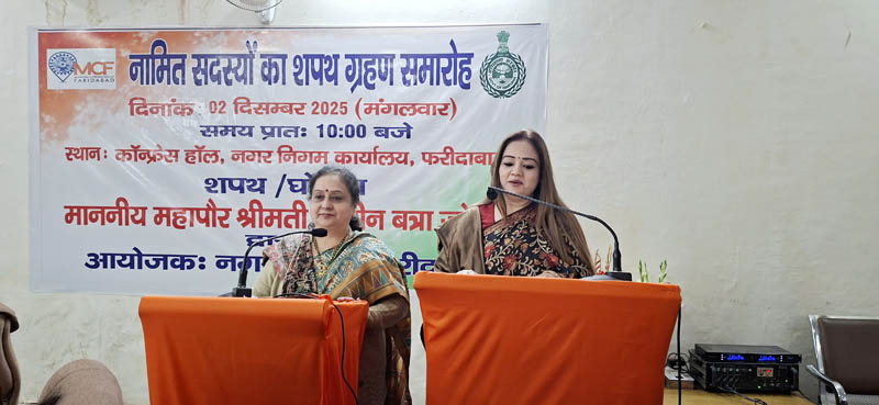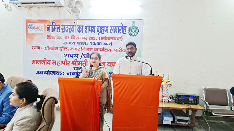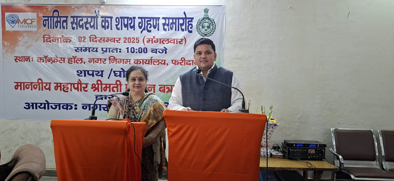 कार्यक्रम में सरकार द्वारा निगम के मनोनीत तीनों निगम सदस्यों जसवंत सैनी, योगेश शर्मा और प्रियंका बिष्ट बिधूनी को मेयर श्रीमती प्रवीण बत्रा जोशी ने पद एवं गोपनीयता की शपथ दिलाने के बाद उन्हें आई कार्ड और उनका स्टैंप भी भेंट किया। इस शपथ ग्रहण के बाद अब नगर निगम फरीदाबाद के सदस्यों की संख्या 46 से बढक़र 49 हो गई है।