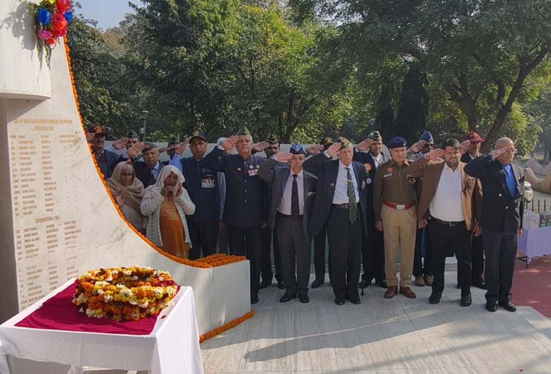 SDM मयंक भारद्वाज ने उपस्थित सैनिकों और वीरांगनाओं तथा सैनिकों के सभी परिवार जनों को विजय दिवस की शुभकामनाएं और बधाई दी। उन्होंने वार मेमोरियल में शहीद स्मारक पर शहीदों को पुष्प चक्र अर्पित कर पुलिस की टुकड़ी द्वारा मातमी धुन के साथ राइफल झुका कर सलामी देने उपरान्त दो मिनट का मौन धारण कर श्रद्धांजलि अर्पित की।
