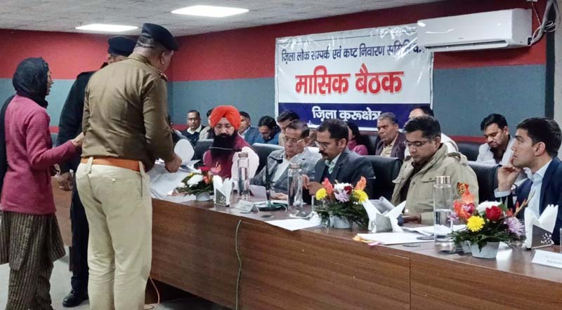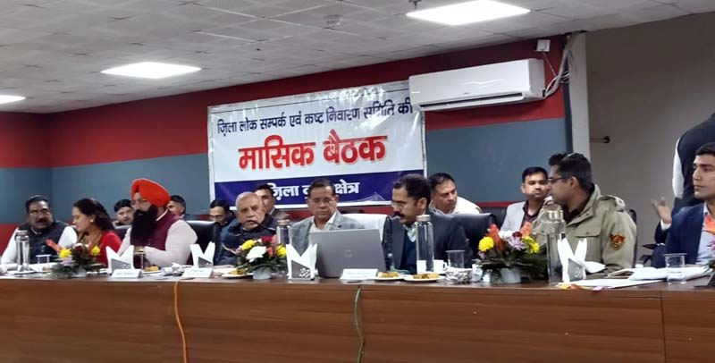 मंत्री राजेश नागर लघु सचिवालय बिल्डिंग के सभागार में आयोजित जिला लोक संपर्क एवं कष्ट निवारण समिति की बैठक की अध्यक्षता कर रहे थे। इस दौरान उपायुक्त विश्राम कुमार मीणा, पुलिस अधीक्षक नीतीश अग्रवाल, विधायक थानेसर अशोक अरोड़ा, विधायक शाहाबाद रामकरण काला, जिला अध्यक्ष सरदार तिजेंदर सिंह गोल्डी भी मौजूद रहे। जिला लोक संपर्क एवं कष्ट निवासी समिति की बैठक में 15 शिकायतों में से 9 शिकायतों का समाधान किया गया। खाद्य नागरिक आपूर्ति एवं उपभोक्ता मामले विभाग मंत्री राजेश नागर का उपायुक्त विश्राम कुमार मीणा ने स्वागत किया।
