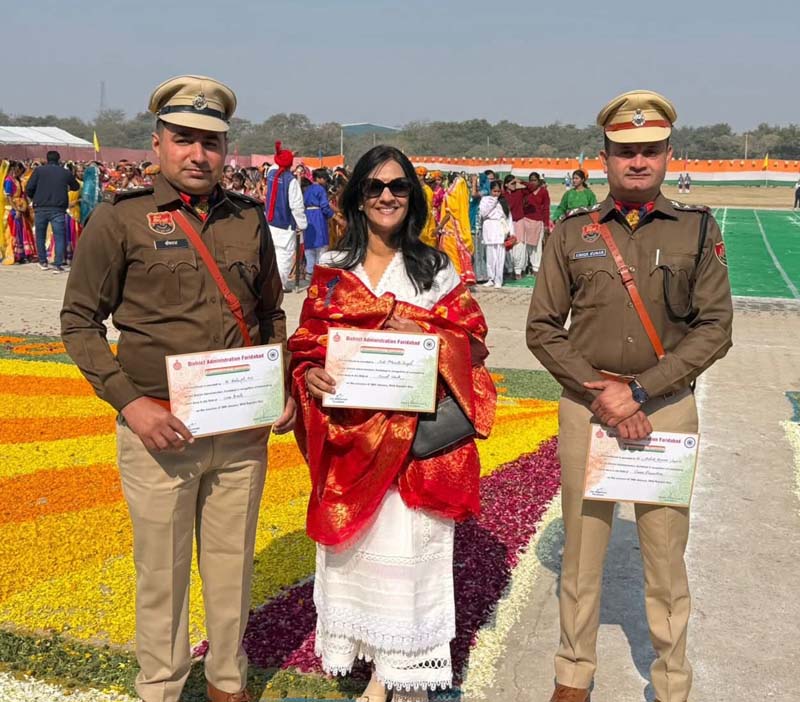 Faridabad News, 27 जनवरी: 77वें गणतंत्र दिवस के अवसर पर फरीदाबाद में जिला स्तरीय समारोह का गरिमामयी भव्य आयोजन किया गया। इस अवसर पर हरियाणा की स्वास्थ्य मंत्री आरती सिंह राव ने अपने-अपने क्षेत्रों में विभिन्न विभागों के उत्कृष्ट प्रदर्शन करने वाले प्रतिनिधियों और गणत्रंत दिवस परेड में भाग लेने वाले विभागों को सम्मानित किया। स्वास्थ्य मंत्री आरती सिंह राव ने सभी सम्मानित प्रतिनिधियों को प्रमाणपत्र प्रदान किए।