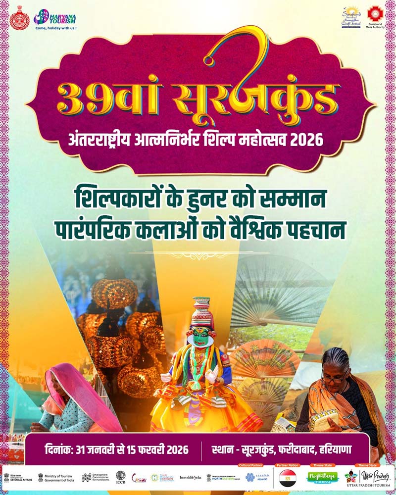 Faridabad News, 28 जनवरी: जिला उपायुक्त आयुष सिन्हा ने बताया कि हरियाणा पर्यटन एवं सूरजकुंड मेला प्राधिकरण के तत्वावधान में आयोजित होने वाला 39वां सूरजकुंड अंतरराष्ट्रीय आत्मनिर्भर क्राफ्ट फेस्टिवल-2026 इस वर्ष नई पहचान के साथ लोकल टू ग्लोबल आत्मनिर्भर भारत की पहचान थीम पर आयोजित किया जाएगा। यह भव्य आयोजन 31 जनवरी से 15 फरवरी तक सूरजकुंड मेला परिसर में संपन्न होगा।