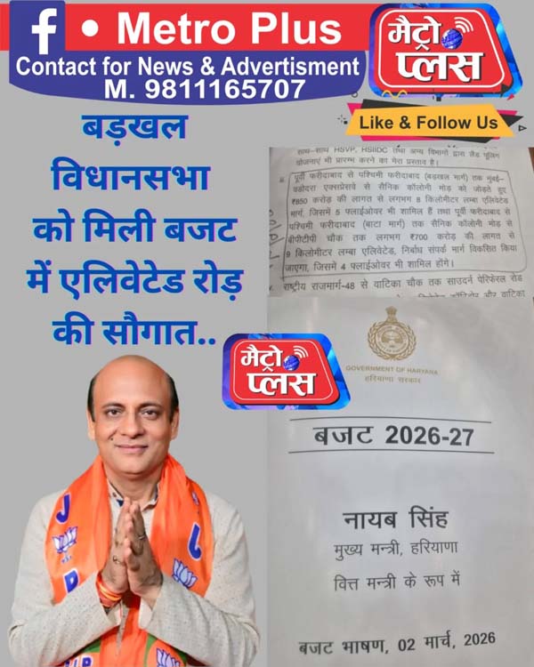 इस अवसर पर बडख़ल विधायक धनेश अदलखा ने मुख्यमंत्री नायब सिंह सैनी का आभार प्रकट करते हुए कहा कि वर्ष 2026-27 का बजट विकास, पारदर्शिता और जनकल्याण की भावना पर आधारित है। उन्होंने कहा कि फरीदाबाद में प्रस्तावित ये एलिवेटेड मार्ग राज्य सरकार की दूरदर्शी योजना और मजबूत इंफ्रास्ट्रक्चर विजन का प्रमाण हैं।