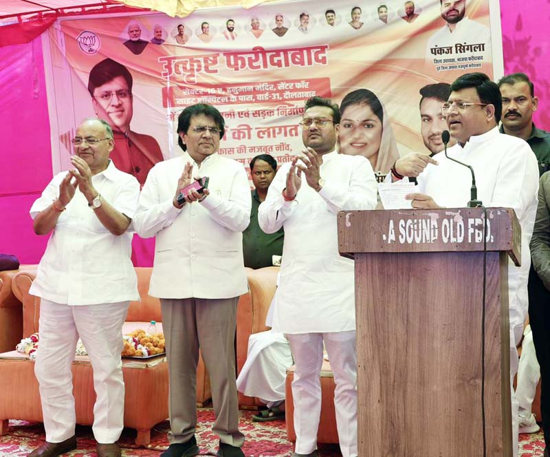 Faridabad, 18 अप्रैल: शहर के समग्र विकास को नई गति देते हुए वार्ड-31 दौलताबाद के सैक्टर-16ए स्थित हनुमान मंदिर के पास 3.84 करोड़ से अधिक की लागत से सीवरेज, पेयजल और सड़क निर्माण कार्यों का शुभारंभ किया गया। कैबिनेट मंत्री विपुल गोयल ने क्षेत्रवासियों की उपस्थिति में इन परियोजनाओं की शुरूआत की और इसे जन-सुविधाओं को मजबूत करने की दिशा में एक महत्वपूर्ण कदम बताया।